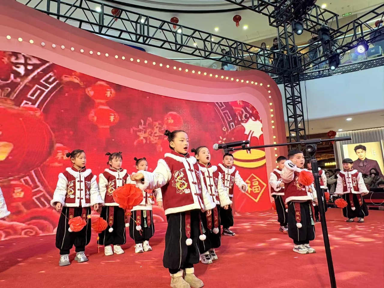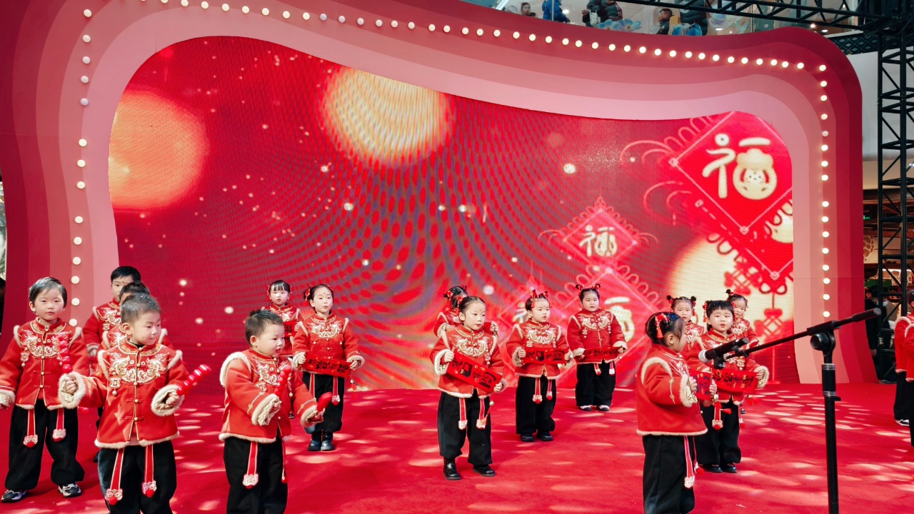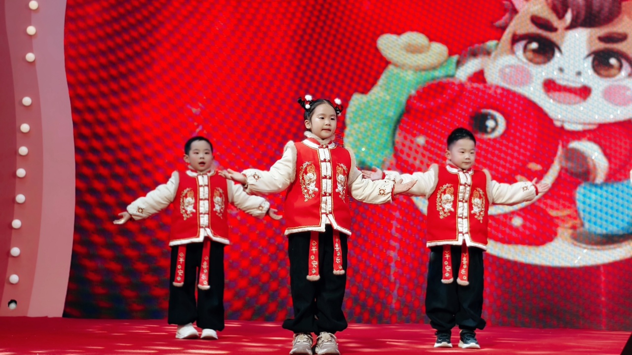 儿童表演《福娃闹春》将传统福娃形象与新年喜庆氛围巧妙融合,营造出浓浓的节日气氛。