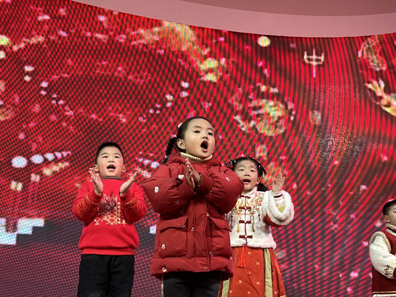 演出在歌曲表演《中国字 中国人》中拉开序幕,孩子们用稚嫩却坚定的声音唱出对中华文化的热爱与自豪。紧接着,诗朗诵《新年到了》和儿歌《中国红》以不同的艺术形式,表达了孩子们对祖国最纯真的热爱。
